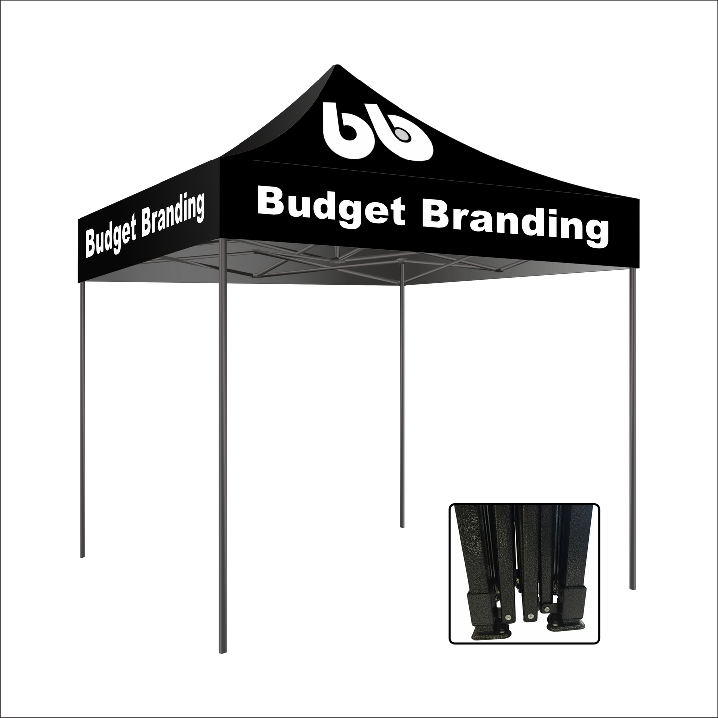 At Budget Branding, we manufacture custom printed bespoke gazebos in full colour, on water RESISTANT, 100% polyester fabric. Our frames are lightweight, easy to setup and take down, and they are high quality and durable. Perfect for your on the go advertising needs!